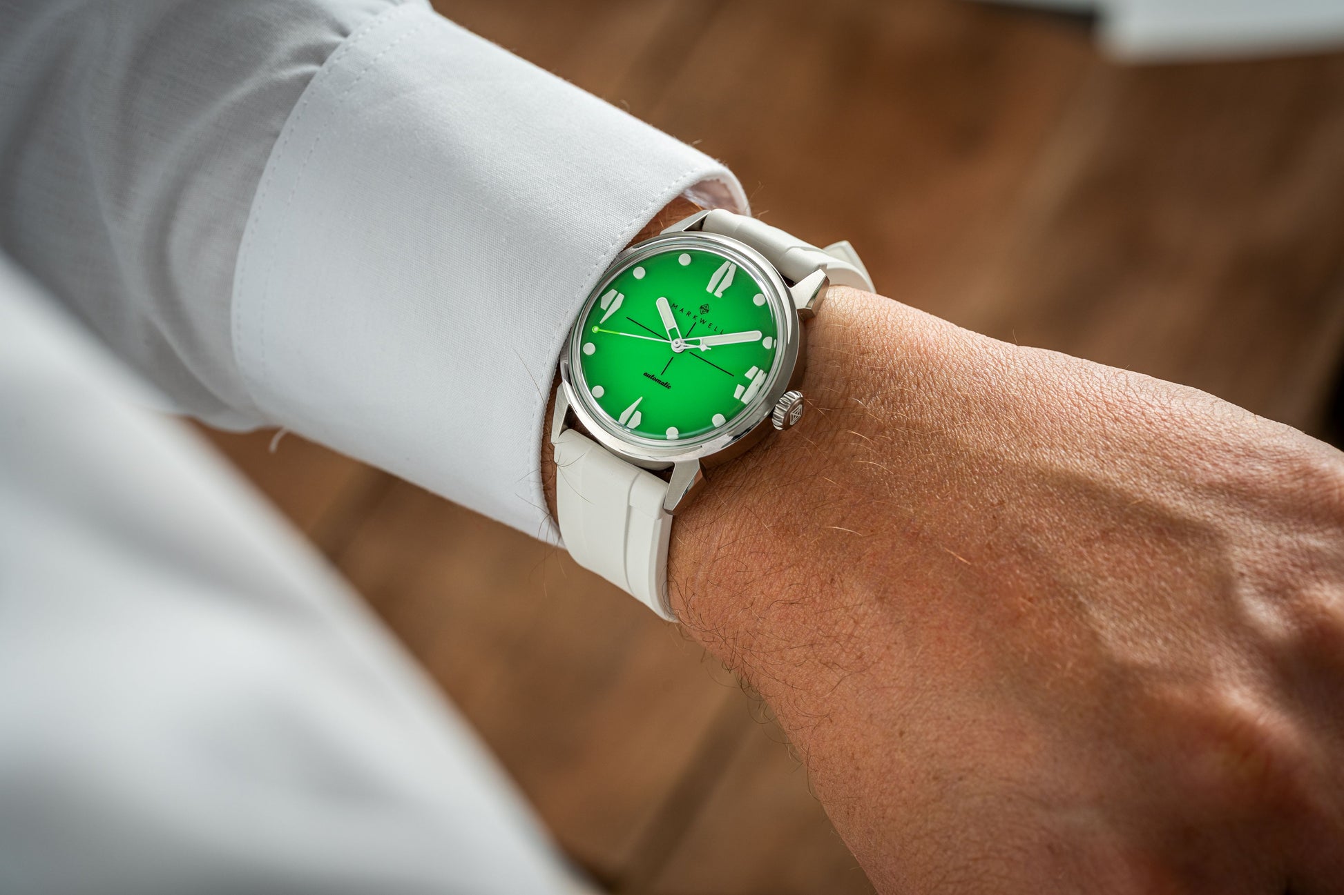 These watches have a real glass fired enamel dial in a rich color invoking the luminosity and shine of your favorite Hard Candy.  In addition to the deep and rich dial the enamel series watches utilize our now iconic and signature numerals this time crafted in Lumicast.  The numerals and markers accentuate the depth of the dial through their 3D construction in solid lume blocks creating light and shadow while the custom hands sweep by.