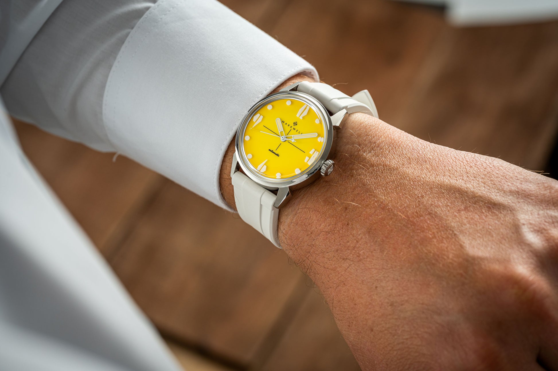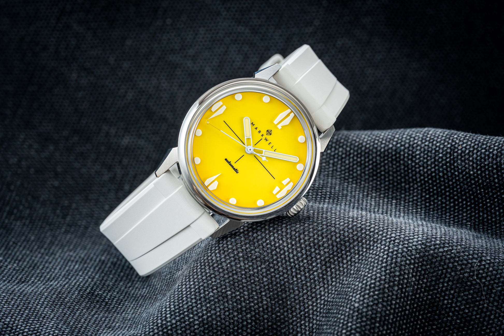 Each watch is supplied with a 20mm FKM rubber strap in either black or white and a signed pin buckle. Other colored straps available for purchase here.